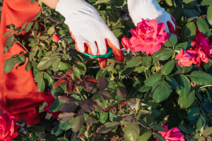 1/Rosiers : Les rosiers doivent être taillés pour enlever les bois morts et les branches faibles, ce qui encourage une croissance saine et une floraison plus riche.